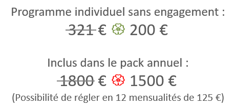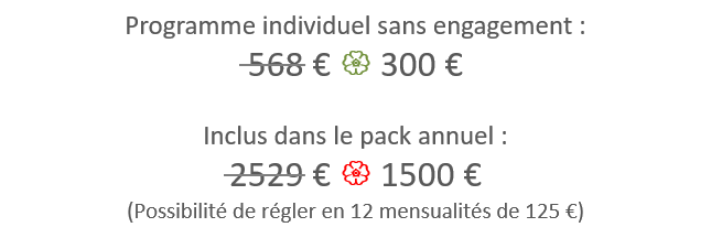 Le Pack Annuel est pensé selon l’évolution des saisons et suit une certaine cohérence. Cependant, il est tout à fait possible de ne souscrire qu’à un programme mensuel dans un premier temps. Les programmes sont proposés de manière à ce que vous ne soyez pas perdu(e)s, même si vous n’avez pas suivi les précédents.